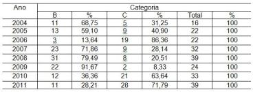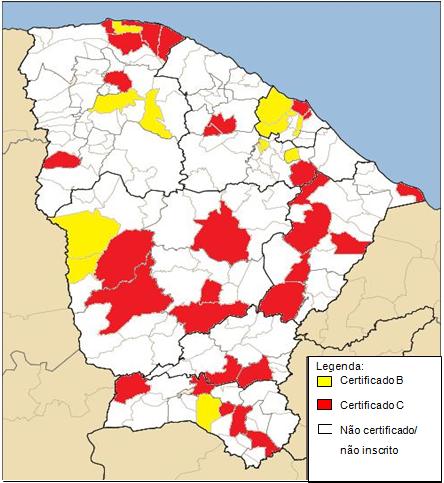 A tabela acima mostra quantos municípios cearenses foram contemplados com a outorga da certificação, no período 2004-2011. Até o presente momento, nenhum município recebeu a outorga na categoria A (verde).