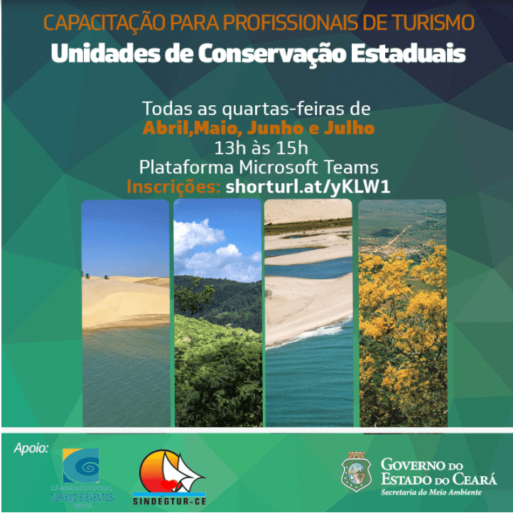A Secretaria de Meio Ambiente (SEMA) está com programação interessante, em formato virtual, para capacitar profissionais de turismo, que acontecerá nos meses de abril maio, junho e julho, sempre às quartas-feiras, de 13h às 15h. Esta vai ser a primeira capacitação virtual para esse público-alvo, com a parceria da Câmara Setorial de Turismo e do Sindicato dos Guias de Turismo.
