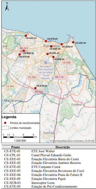 A Figura a seguir traz os pontos de monitoramento realizados no município de Fortaleza.