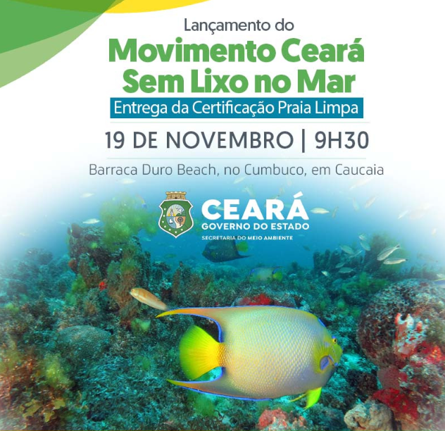 O Estado do Ceará tem realizado ações que promovem a proteção dos oceanos. Uma dessas ações é o Movimento Ceará sem lixo no mar, que terá seu lançamento às 08:00h, no dia 19 de novembro, iniciando com uma limpeza da praia do Cumbuco, em Caucaia e, em seguida, às 09:30h, na Barraca Duro Beach acontece a cerimônia de outorga da Certificação Praia Limpa para 21 distintas praias de 12 municípios cearenses.